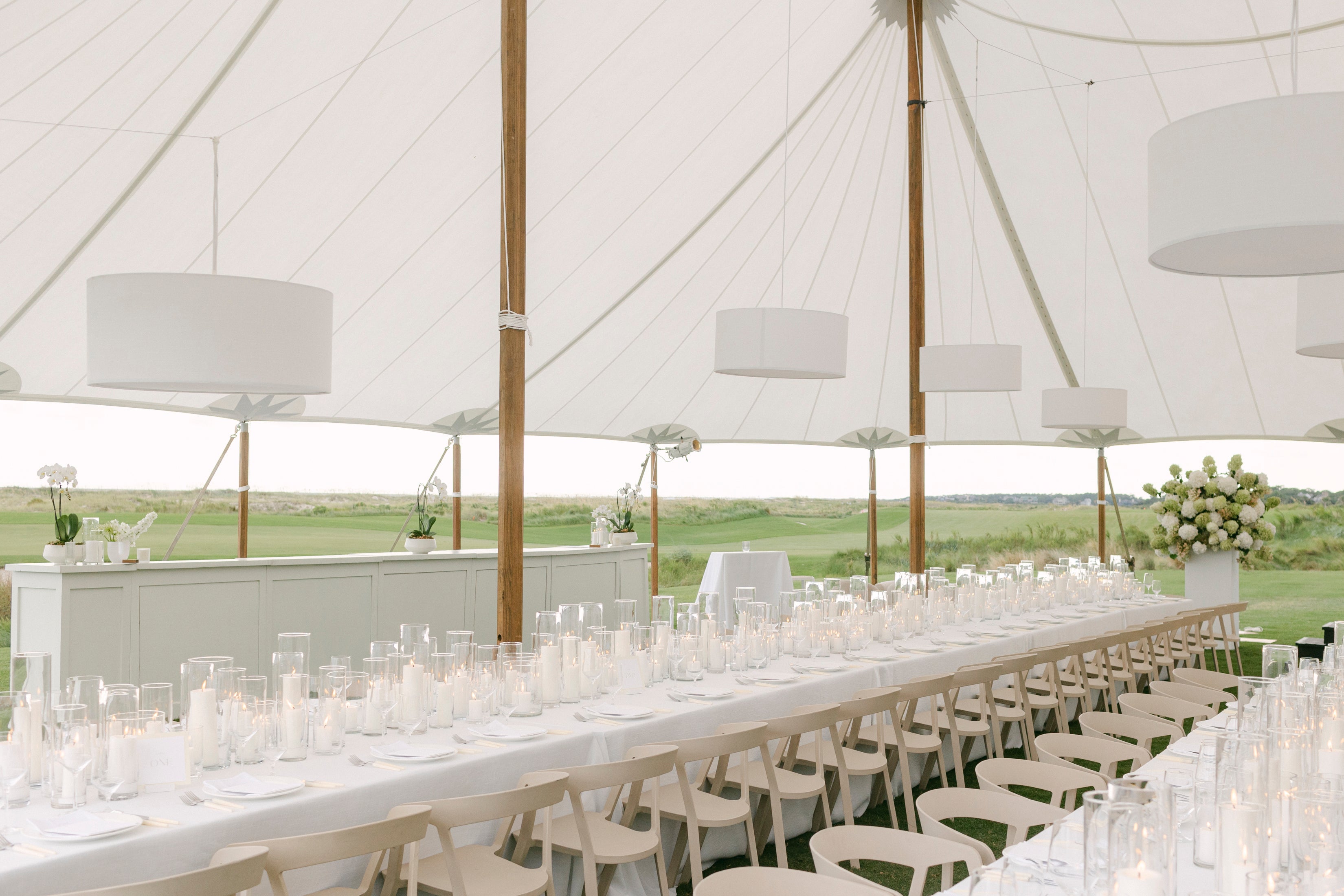 Because monochrome is so high-impact, every piece in the space has to feel considered. From the furniture to the florals, from the dinnerware to the signage—everything should feel curated and cohesive.